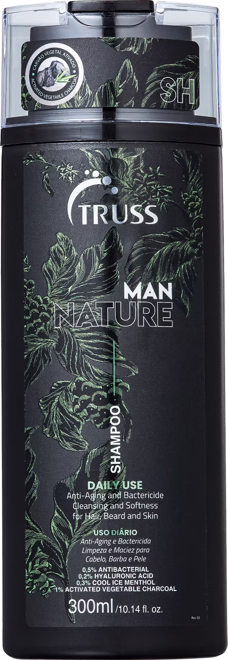 O Shampoo MAN NATURE TRUSS é ideal para ser usado no cabelo, barba e pele. Torna mais efetiva a rotina do homem moderno e prático que adora se cuidar, pois pode ser usado diariamente.